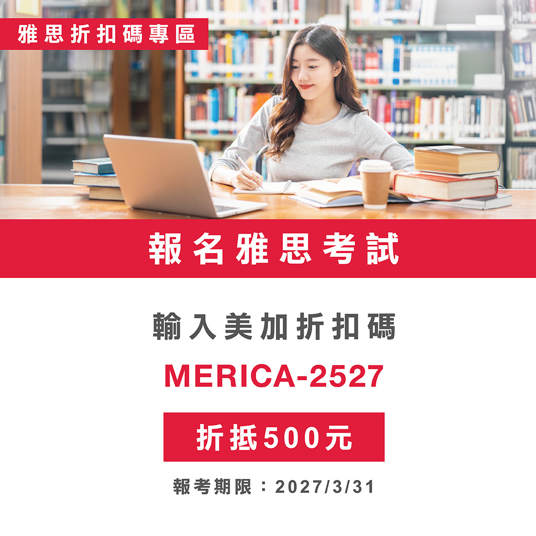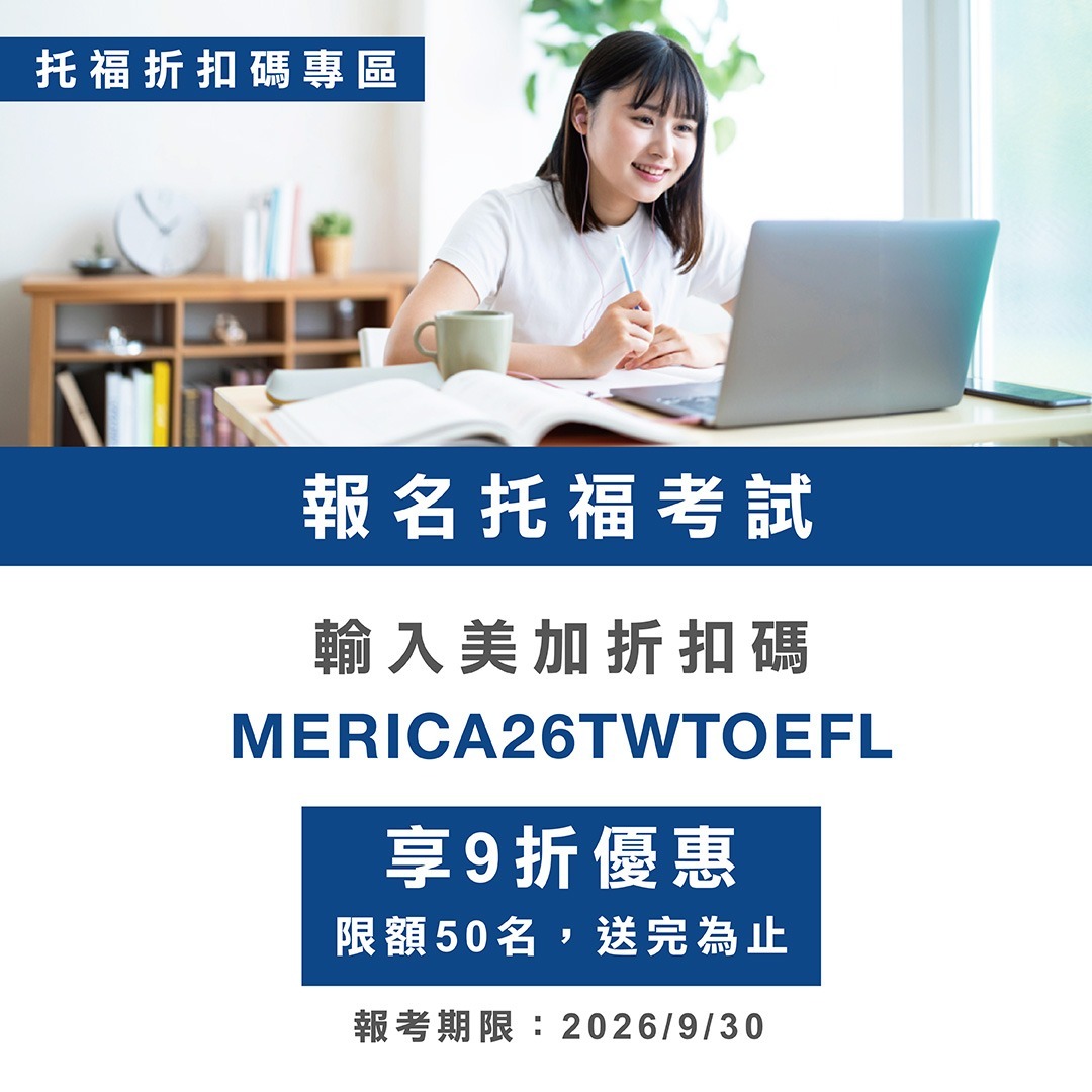 準備雅思托福考試,報名只是第一步, 真正關鍵在於「如何用有成效的方式縮短備考時間,更有效率考到理想分數!」 現在,美加特別提供2026 雅思/托福考試報名專屬折扣碼, 獻給正在準備雅思或托福考試,規劃出國留學等重要關鍵階段的你。 除了透過折扣碼,省下報名費, 也可以與我們的專業課程顧問預約一對一諮詢, 找到最適合你的雅思或托福準備方向。 無論你是第一次考雅思或托福,還是分數卡關,我們都能協助你找出最有效的突破方式。 立即諮詢